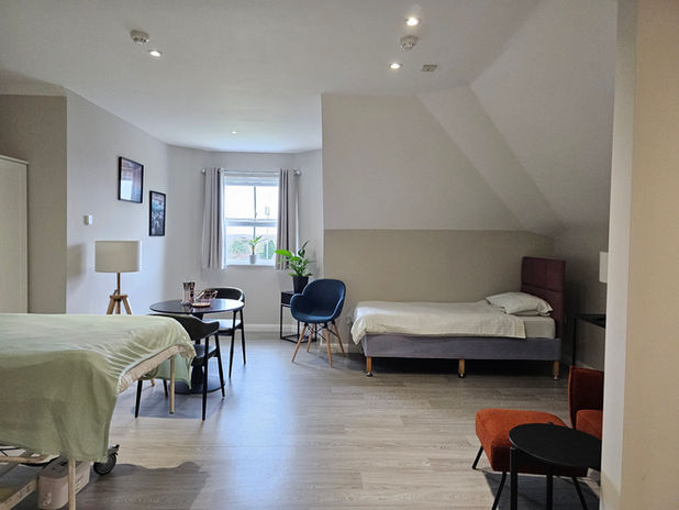 Large private rooms with ensuite wet-room, smart TV, coffee making facilities, kitchenette area